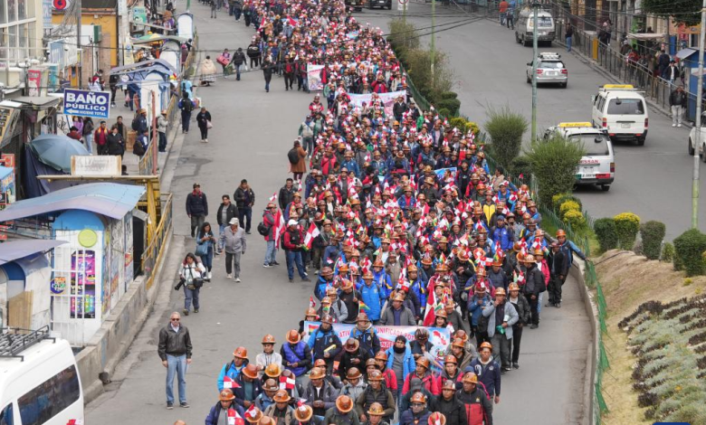 La movilización más numerosa se registró en La Paz, donde mineros cooperativistas llegaron desde distintas regiones y caminaron desde la ciudad de El Alto hasta el centro político del país.